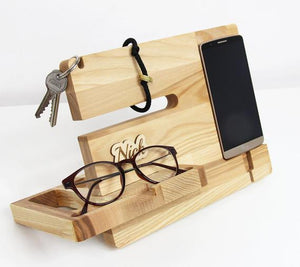 Unique and compact design wooden docking station consists of one piece with lots of necessary "caves" and laser-cut places for holdin...