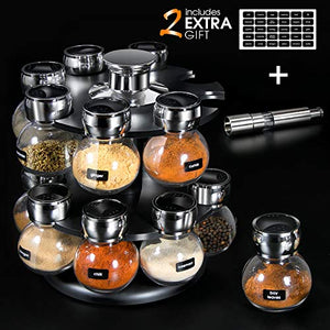 Seasoning Spice Jars with Rack Organizer 16-Jar Revolving Countertop Glass Spice Jar set with Labels MasthomeSeasoning Spice Jars with Rack Orga...