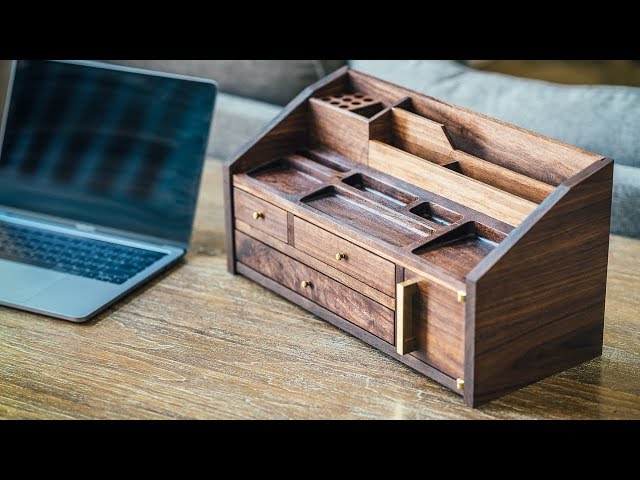 Article www.bevelishcreations.com This mid-century modern inspired solid walnut desk organizer is a small project, but the techniques used will tra...