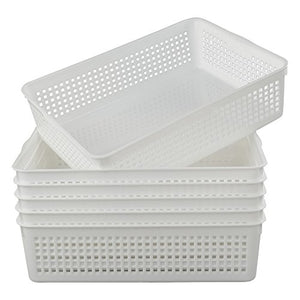 Lesbin Plastic Storage Trays Baskets/Organizing Baskets, 13.2 Inches x 9.6 Inches x 3.6 Inches, Set of 6 (White)Lesbin Plastic Storage Trays Bas...