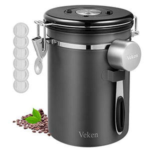 Veken Coffee Canister, Airtight Stainless Steel Kitchen Food Storage Container with Date Tracker and Scoop for Beans, Grounds, Tea, Flou...