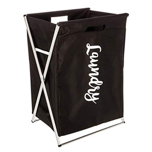 Home Collection Tall Foldable Black Laundry Canvass Basket with Silver Metal StandHome Collection Tall Foldable Black Laundry Canvass Basket wit...