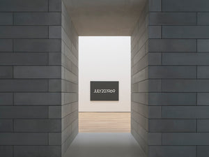 On Kawara, Moon Landing (detail), 1969, from the Today series (19662013), acrylic on canvas, three panels, each 61 x 89. Installation view, Glenst...