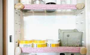 How to turn old medicine cabinet into open shelving Charleston Crafted Old Medicine Neutral paint w/small purple accents & paint frame PURP...