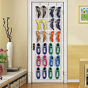 Amrka 24 Pockets Shoes Storage Transparent Over Door Hanging Shoe Rack Hanger Tidy Organizer (White)Amrka 24 Pockets Shoes Storage Transparent Ov...