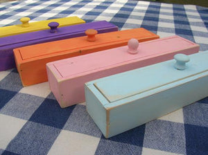 Wood pencil box with lid. The box has been painted and lightly distressed.